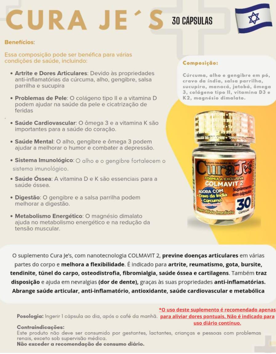 O Cura Je’s é um suplemento natural desenvolvido para promover saúde, bem-estar e qualidade de vida. Sua fórmula exclusiva combina ingredientes de alta eficácia que auxiliam no fortalecimento do organismo e na melhora da disposição física e mental.